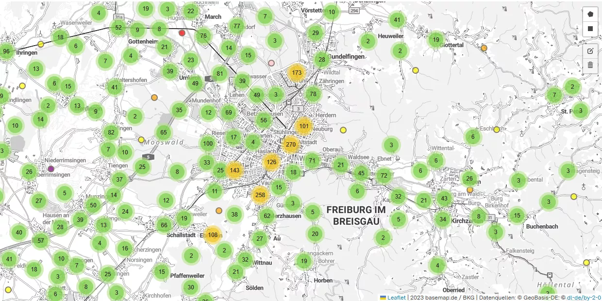 Das LGRB stellt neben dem Portal LGRBbohrungen auch einen WMS-Dienst bereit, der die Bohrpunkte in Baden-Württemberg im LGRB-Kartenviewer darstellt. Im Unterschied zu LGRBbohrungen werden über diesen WMS-Dienst sämtliche Bohrungen inklusive der zugehörigen Nachweisdaten angezeigt, auch dann, wenn für die jeweilige Bohrung keine Schichtdaten vorliegen. LGRBbohrungen enthält nur Bohrungen, für die Schichtdaten vorhanden sind. Schichtdaten sind im WMS-Dienst nicht abrufbar.